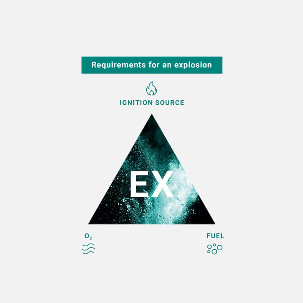 Los medios inflamables y explosivos, como el gas, el vapor, la niebla o el polvo, pueden provocar incendios graves y explosiones violentas. Por eso, nuestros brazos de extracción están equipados con componentes especiales de protección contra incendios y explosiones y ofrecen un funcionamiento seguro: