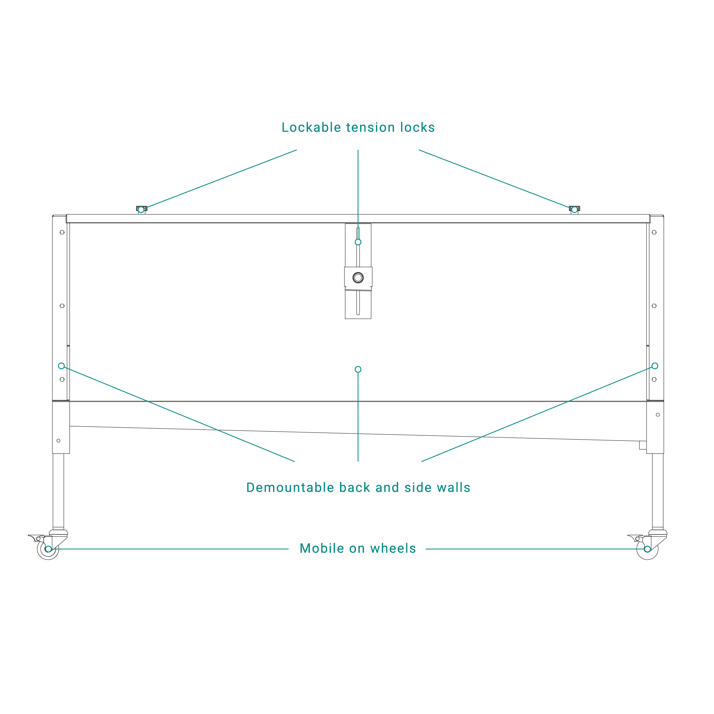 - Entièrement démontable à (LxHxP) : 1.500 x 300 x 500 mm